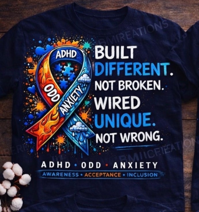 Being built different isn’t a flaw — it’s a superpower. This navy blue tee celebrates the strength, resilience, and uniqueness of those living with ADHD, ODD, and Anxiety. Wear your truth proudly. ✦ Built Different. Not Broken. ✦ Wired Unique. Not Wrong. ADHD · ODD · ANXIETY Awareness · Acceptance · Inclusion ▸ Color: Navy […]
