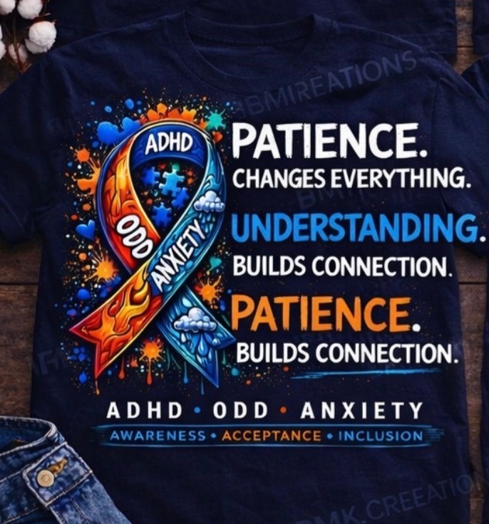Patience isn’t passive — it’s the most powerful tool we have. This navy tee honors every caregiver, teacher, and loved one who shows up with patience and understanding every single day. ✦ Patience. Changes Everything. ✦ Understanding. Builds Connection. ADHD · ODD · ANXIETY Awareness · Acceptance · Inclusion ▸ Color: Navy Blue ▸ Sizes: […]